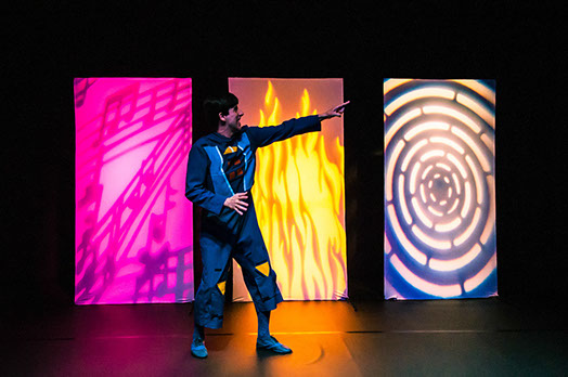 VICTOR JAMES faz através da 'Pantomima Literária' uma viagem até o mundo virtual. Seja na trilha sonora composta em harmonia com a movimentação, seja nos figurinos quase que ilustrados nos corpos. Com o efeito ilusório da mímica invade o imaginário do público através de diferentes personagens e formas geométricas que se constroem no espaço.